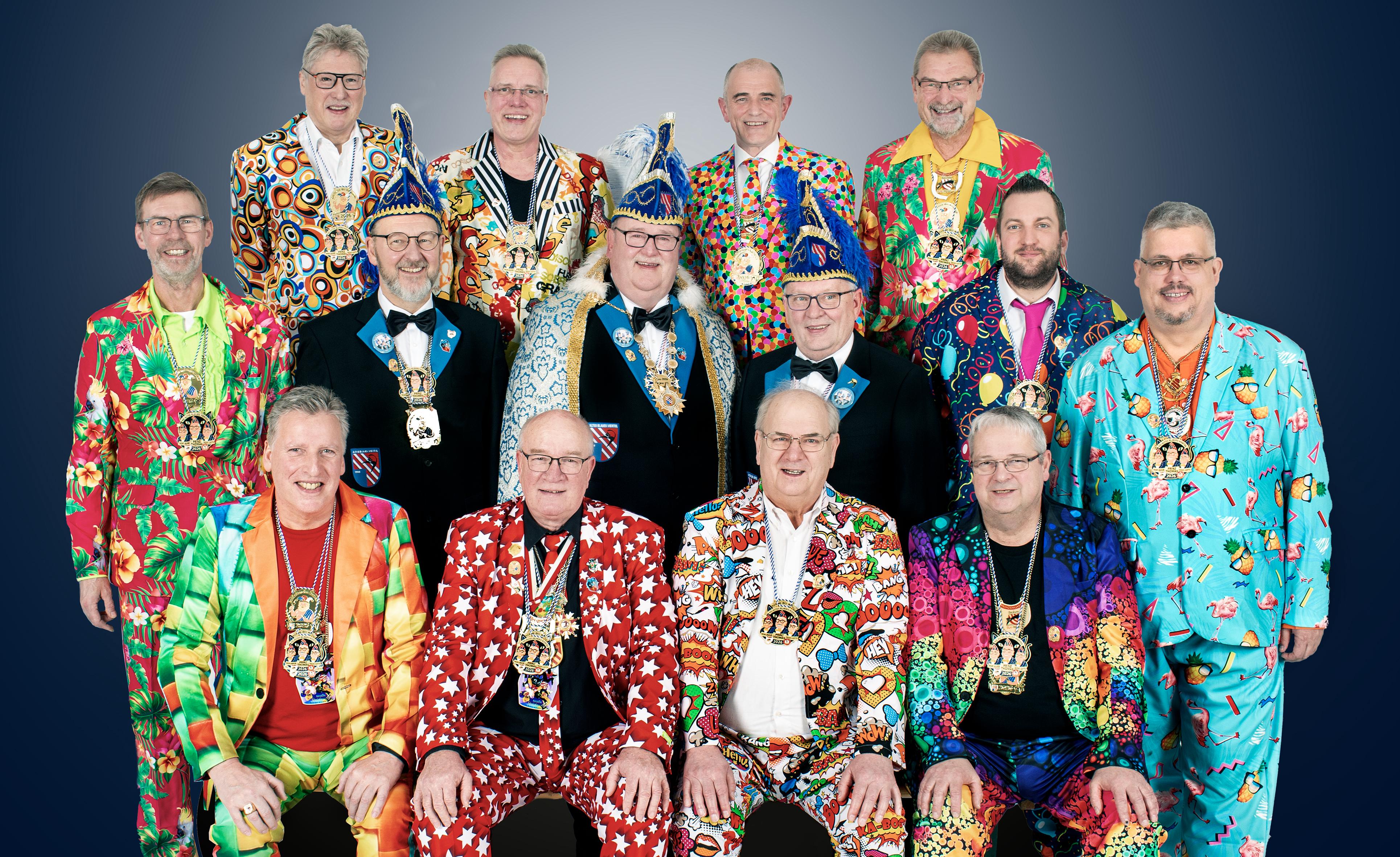 Das Viertel Unser Prinz mit Hofmarschällen und Elferrat Vorstand Prinzenchronik Allgemeine Blaue Verunsicherung Alte Blaue Bande Wagenbau